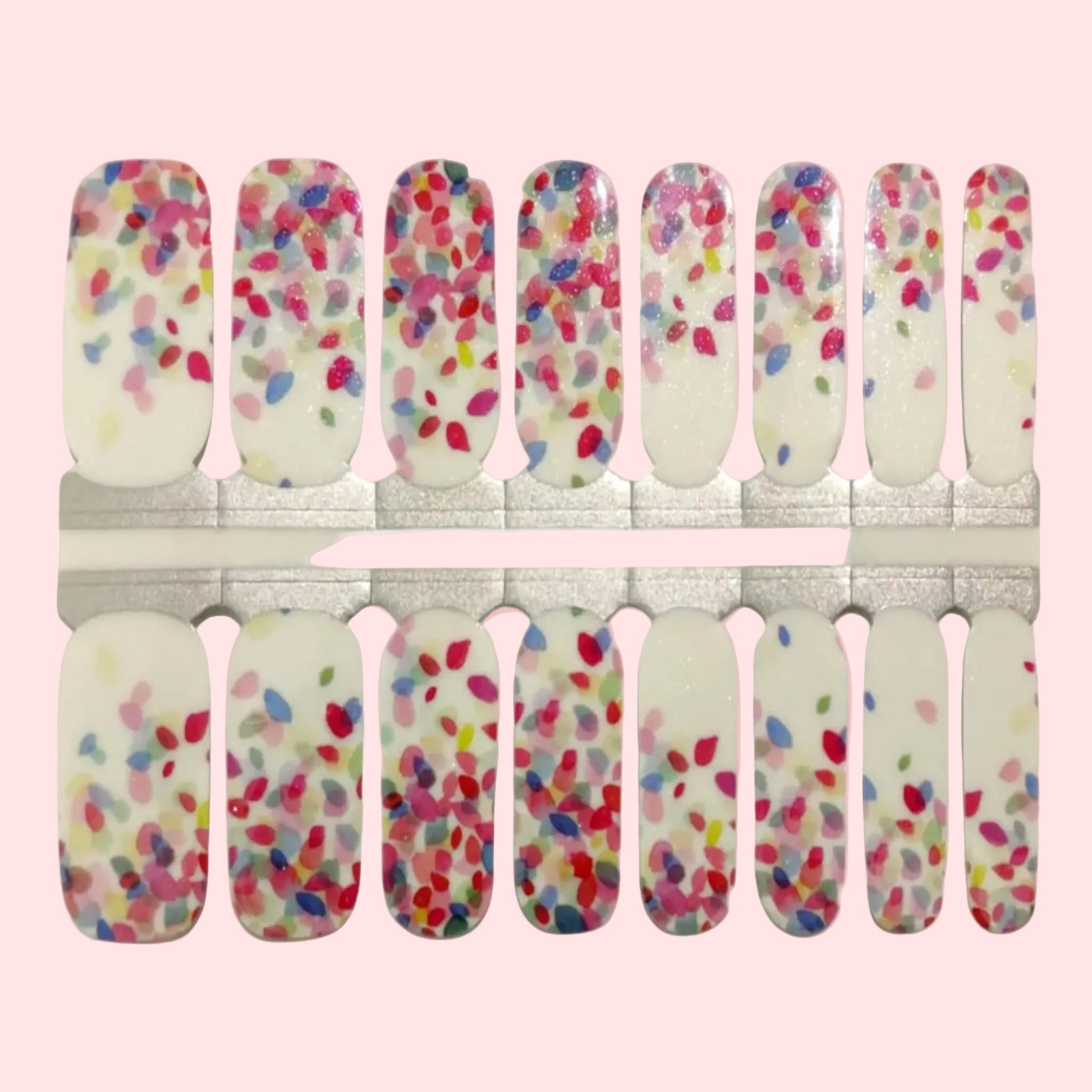 Get a flawless, hand-painted salon look in seconds. These vibrant, ultra-thin nail stickers feature a playful scatter of watercolor petals on a sheer milky base. No dry time, no smudges—just peel, press, and glow!